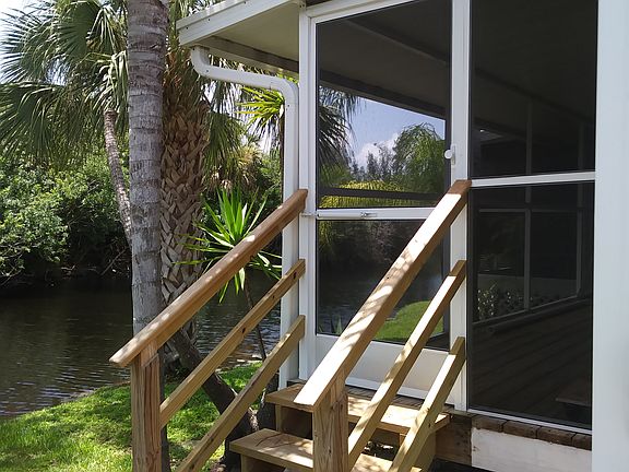 Perfect for snowbirds. 2 bed, 1 bath waterfront duplex. Move in ready, great private location, convienant to everything. These units are not condos and treated as single family dwellings. Nice pool/clubhouse. Tiled thoughout. Peaceful. Designated 2 car parking. Lawn maintenance/trims taken care of. New roof. NO PETS. Move in ready. Agents add 3% to asking price.