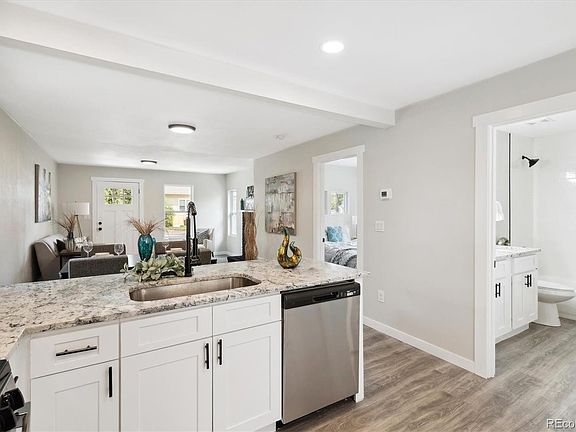 THIS PROPERTY QUALIFIES FOR SPECIAL FINANCING. .***GORGEOUS TOTAL REMODEL***Located in the Two Creeks area of West Colfax enjoy the benefits of being in Jefferson County but being so close to downtown and Sloans Lake. This property has tremendous curb appeal. As soon as you walk in you will see how open and big the house feels. The wide planked engineered hardwood floors will instantly make you feel at home. The living room has plenty of space as well as the original wood burning fireplace. A nice dining area leads you back to the stunning kitchen. White Shaker style cabinets, with soft close doors and drawers, Ice White Granite countertops, glass subway backsplash and new GE appliances. Both bedrooms are decent size. The bathroom is all new and features custom lighting, tub with tile surround and new fixtures. Landscaping has been professional don in both the front and rear. Front grass has a sprinkler so you can keep it green. The back yard has a one car alley load garage, new concrete and an opener. New HVAC with AC. New H20 heater. New roof, new electrical, new plumbing. All new paint and hardware. New Windows and LED lighting. New interior doors as well as front and back doors. This one is move in ready. Mechanical and storage in the basement.