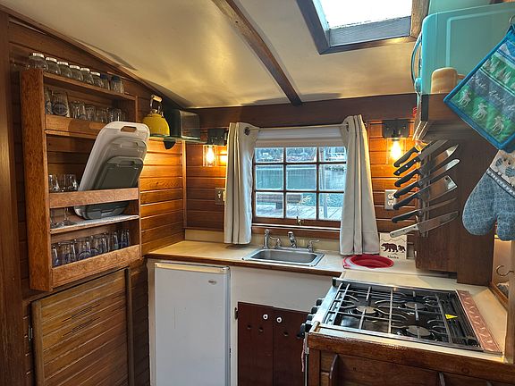 Here is your chance and opportunity to rent a fully furnished one bed one bath boat house which is located in downtown Juneau. It is walking distance from stores, shops, and trails. All utilities are included except propane, gas, and diesel. Pets are allowed on a case by case basis with a pet deposit. When you enter the boat, there is a covered entry way with tons of storage. As you enter the boat, you have comfortable living room, dining area, and full kitchen. As you pass through the door you have your bedroom with a full size beds, closet for hanging clothes and a full bathroom with flushing toilet. It is moving ready and open to make it your home. Owner pays for water, harbor fees, parking, and electric. Tenant will pay for diesel, propane gas, and internet. Ideally we are looking for a year lease but we are willing to negotiate for the right tenant. This is a nonsmoking property. Pets are allowed on a case by case basis and must be approved by owners. Tenant is responsible for snow removal from the roof.