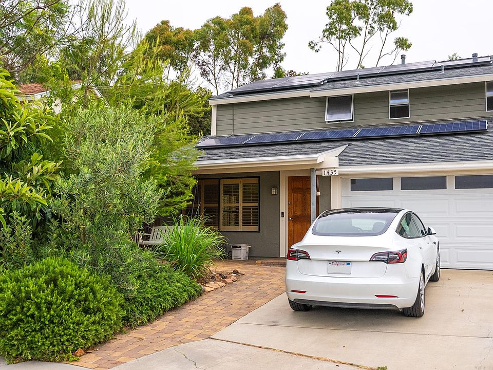 Experience the joys of sustainable living in Cardiff-by-the-Sea. Unleash your culinary creativity with an array of fresh herbs and the opportunity to pick your own pomegranates, apples, passion fruits, lemons, and more. Enjoy a true farm-to-table experience from the lush, food-forest front yard. Share this peaceful space with birds and butterflies, and nurture your green thumb in the garden boxes. This home is equipped for sustainable living with a 4.2 kWh solar system, laundry line, and rain barrels. It features four bedrooms, two and a half baths, and is located on a quiet cul-de-sac. Enjoy access to a 26-acre private canyon and a community pool. The beach, restaurants, and grocery stores are just a mile away. The spacious and functional floor plan includes stainless steel kitchen appliances, cork flooring in the living room, and bamboo flooring throughout the second story. Additionally, there's a bonus shed for extra storage. NOTE: To all applicants, To assist you and achieve better results, please read the following before requesting a viewing appointment: To qualify for renting this house, you must earn at least three times the monthly rent, which is $15,000 per month. A rental application must be submitted on the Zillow platform before we schedule an appointment. No exceptions, please. Thank you. NO SMOKING, No Cats, small dogs are ok will collect a pet deposit. Renter pays for SDG&E, Water.