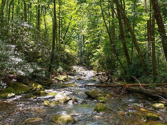 Creekside Luxury Retreat situated between Highlands and Franklin, this stunning custom home offers bold Buck Creek frontage wrapping around two sides, creating a private, serene setting. With over 4,200 sq ft of fully furnished luxury, this 3BR, 3BA, 2 half bath home is designed to impress. New composite decking on all porches. Each offers breathtaking views of the creek, hot tub, and firepit area. The light-filled great room boasts soaring wood beam ceilings, a stone wood-burning fireplace with gas starter, and hardwood floors. The chef's kitchen includes a Sub-Zero fridge, 6-burner gas range, granite, pantry, custom cedar cabinets, and breakfast bar. The adjacent dining area offers peaceful Creekside views. Upstairs are 2 ensuite bedrooms with vaulted ceilings, walk-in closets, and a private balcony in the primary suite. The lower level offers a large rec room, wet bar,1.5 baths, a walk-out terrace, and another bedroom, and a bonus room to sleep in, all with creek views. A 2-car garage, Starlink internet, security system, engineered driveway, and complete this one of a kind mountain paradise!