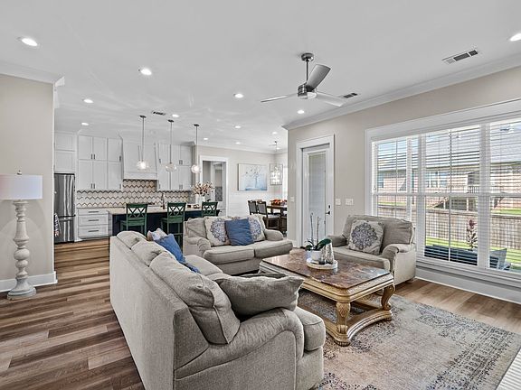 Beautifully maintained 1 ½-story home located in the highly sought-after Creekside Subdivision. This spacious 4-bedroom, 3-bath residence offers a split-level, open-concept floor plan with an office and a versatile bonus room upstairs. The inviting living room boasts 10-foot ceilings, expansive windows that fill the space with natural light, and a modern LED fireplace. The kitchen is a true centerpiece, featuring ample cabinet space, granite countertops, a large island with a farmhouse sink, and a walk-in pantry. The primary suite is a private retreat with a tray ceiling, a luxurious en-suite bathroom, double sinks, a standalone soaking tub, walk-in shower, and a generous walk-in closet. Additional highlights include a spacious laundry room with cabinets, counter space, a sink, and a hanging rail. The upstairs bonus room offers a full bath, closet, and additional storage, making it ideal for guests or a media/game room. Step outside to enjoy the covered patio, perfect for grilling and relaxing, overlooking a fully fenced backyard. Don't miss the opportunity to call this exceptional home yours—schedule a showing today!