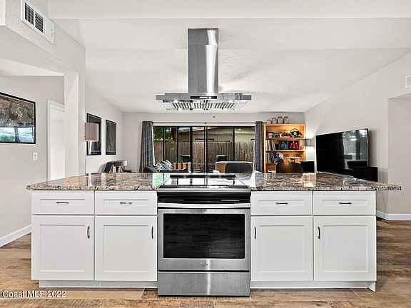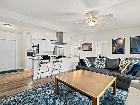 This charming, well-cared for 4 bedroom home was fully renovated in 2017, including Roof, AC and water heater. It features a wide-open floor plan & modern finishes throughout. The contemporary kitchen showcases bright white cabinets, sleek granite counters, SS appliances & a kitchen island complete w/ stainless hood vent. Wood-look tile floors sweep through the living room to large glass sliders that opens to a beautiful deck & private, fenced backyard; a perfect spot for outdoor relaxing. Both bathrooms have been updated & the sizable laundry room features lots of storage space and access to the 2 car garage. Sitting on a corner lot in the desirable neighborhood of Surfside Estates, you are just minutes to Kelly park, Banana River access, shopping, dining, Port Canaveral & the beaches!