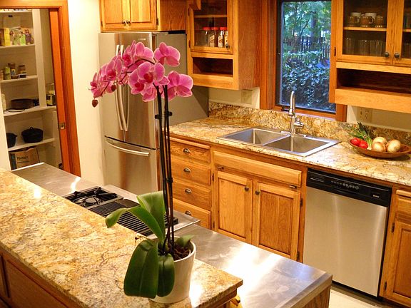 Unique Pacific NW Regional home in the quiet Fairmount neighborhood. Vaulted ceilings. Wood framed windows and several stained glass windows. Stainless steel and marble kitchen counters with Jenn Air range and large pantry. Unique antique doors and pocket doors. Use of many native species of wood throughout the interior. Clear redwood siding. Ipe deck and latticework for privacy. Back brick patio includes pond and covered area for hottub. Private parking off alley with space for car in garage with automatic door opener and lots of space for storage. Garage can otherwise be used for recreation area with ceiling fan, electric heaters, wired and french doors to the patio. Storage in bedrooms above closets. New roof and freshly stained exterior and most of interior repainted.