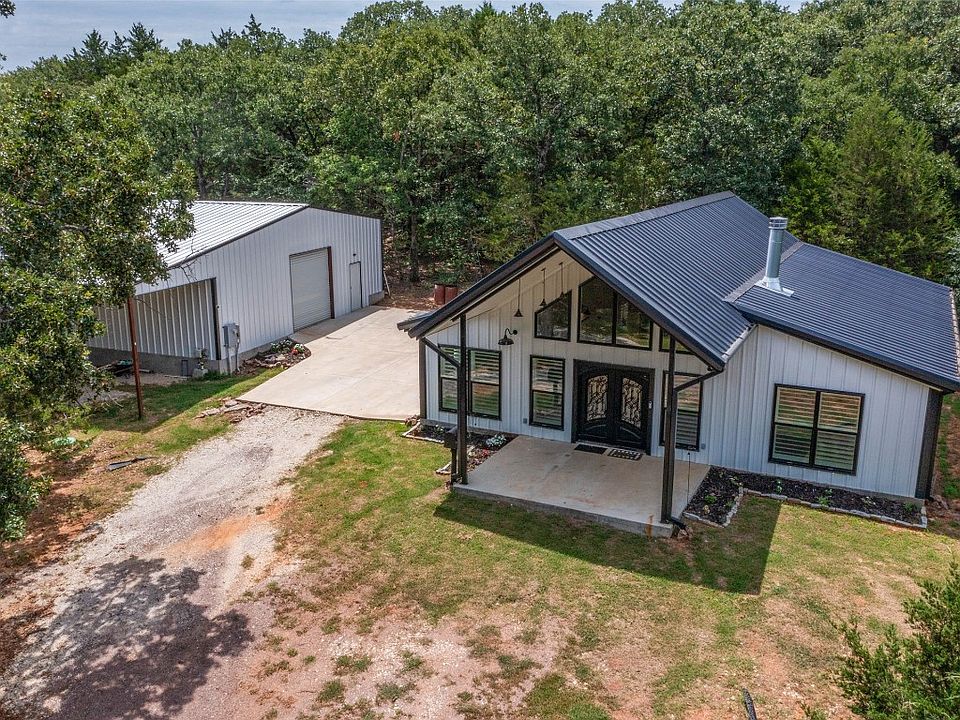 Welcome to your dream property! Nestled on a stunning 10-acre parcel, this magnificent barndominium is close to the breathtaking Lake Texoma and promises a truly exceptional lifestyle. Step inside this inviting home and you'll be captivated by the open floor plan with high ceilings and all of the luxurious, custom features with tons of natural light. The well-appointed kitchen boasts top-of-the-line appliances, ample counter space, and a spacious island, making meal preparation a delight. Whether you're a seasoned chef or a culinary enthusiast, this kitchen is sure to inspire your culinary creations. After a long day, unwind in the indulgent hot tub, surrounded by the serene beauty. The master suite is a haven of luxury, featuring a custom-designed closet. Retreat to this sanctuary and experience the ultimate relaxation and comfort. A remarkable 40 x 40 shop is complete with dual roll-up doors. Don't miss this incredible opportunity to own your own piece of paradise.