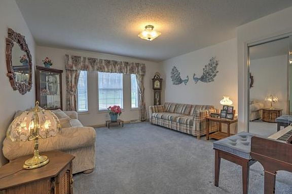 One level living at it's Best! Beautiful park like setting for this 3,000 square foot custom built brick ranch with a three car garage plus climate controlled storage room. Home features a great room with cathedral ceilings, double sided gas fireplace, doors leading to a porch overlooking a large pond with fountain, kitchen with plenty of cupboards, two pantries and island which seats six, separate dining room, sitting room, an office, laundry room and guest powder room. Huge master bedroom with jetted tub, separate shower and walk in closet, second bedroom has a half bath and third bedroom has a full bath. Pull down attic floored for more storage. And there's more .... 2.89 acres of level land with fruit trees, walnut and pecan trees, grape vines, a garden area and a creek with small water falls borders one side.