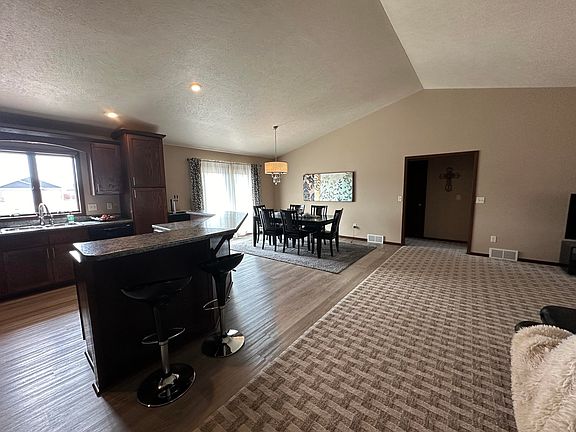 Living is easy in this impressive ranch style with lots of beauty AND just across the street from the golf course and walking path! Easy working kitchen with large island and a spacious dining area with glass doors leading to a gorgeous patio. Cathedral ceiling, living room and newer floor coverings throughout much of the main floor. Two bedroom and full bath, plus a large primary suite with tray ceiling, walk-in closet, and jacuzzi tub. Main floor laundry room as well. Two more bedrooms (one with walk-in closet) and a full bath. Large family room with bar and surround sound to enjoy family nights or entertain complete the beautifully finished drain tiled basement with poured walls. Attached insulated and finished double garage. Stunning custom patio with built-in firepit, stamped and colored concrete, along with a front porch with stamped and colored concrete. Underground sprinklers and storage shed. This IMMACULATE one-owner home is sure to please anyone! Check out the 3D Virtual Tour.