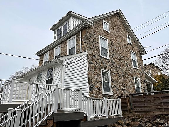 Remodeled Stone House in the Village of Limeport! 3 Bedrooms, 2.5 Baths, Remodeled Kitchen with Quartz countertops, stainless steel appliances and butler pantry, plus breakfast bar, Family Room with wood burning fireplace, Mud Room with Washer and Dryer which remains, covered front porch & large maintenance free rear trek deck overlooking fenced in yard, Jack and Jill set up on the 2nd level with 2 spacious bedrooms sharing a beautiful new bath with separate vanities, tub/shower with glass doors and subway tile walls, 3rd floor suite has its own full bathrooms and walk in closet area, Propane Gas Heat, Central Air, Walk out basement, bridge over beautiful Saucon creek to detached oversized 2 car garage, 3 year old shingle roof, Beautiful home, move in condition!