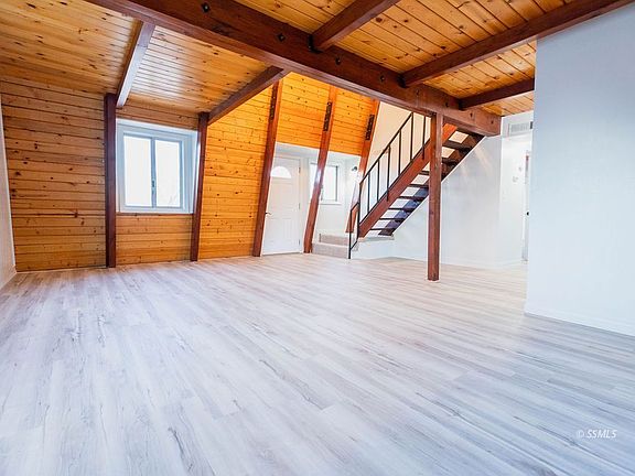 This unique, modified A-frame cabin provides beautiful craftmanship, natural knotty pine walls and ceiling and a full acre of fenced land. There is a detached 2 car garage / workshop. Mature trees and a sliding entrance gate. Inside you have 2 full bedrooms and a full loft with a closet that could easily be converted into a third bedroom. Living room area features vaulted ceilings. New paint and flooring throughout the entire home. There is a pistachio farm across the street providing tons of privacy and lots of space between neighbors. Seller's just had a brand new septic tank and leach line installed.