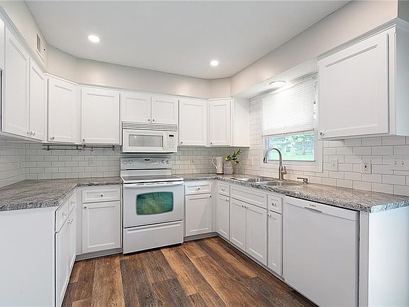 The white, sunlit eat-in kitchen opens to a backyard patio where raised beds are already producing asparagus and other goodies - and there's room to grow your own herb or veggie garden. Butterfly-friendly blooms attract pollinators, creating a mini backyard oasis that's as peaceful as it is practical.