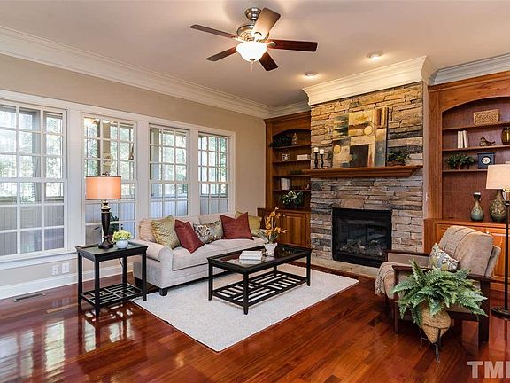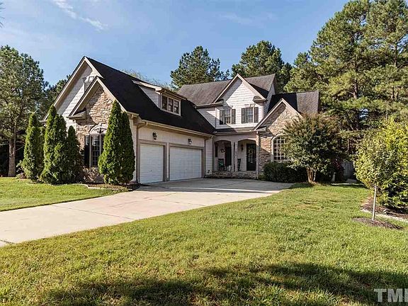 Stunning custom home nestled on private cul-de-sac home site in quiet enclave of homes. Great N. Raleigh location just minutes to 540! Open floorplan, with grand kitchen accented with beautiful maple cabinetry. Rich Brazillian Cherry hardwood floors, gorgeous millwork, stone fireplace, built-in cabinetry & more! Huge first floor owner's retreat. Spacious secondary bedrooms all w/bath access. Awesome bonus room w/separate office or playroom! Sunroom, deck with hot tub & large backyard & 3 car garage!