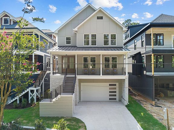 Ultra luxury modern home in highly sought after Sunset Hills. Inside, white oak hardwoods flow seamlessly through the open layout accompanied by a cool & unique white oak ceiling trim. Quartz counters, Thermador stainless steel appliances, & top-notch cabinetry. A covered front porch with black metal accents overlooks the Raleigh Greenway, while the flat, fenced backyard can be enjoyed from the screened porch & patio. The main bedroom has a walk-in closet, luxury bath with soaker tub & tiled frameless shower. Boasting exceptional features, including an oversized 2-car garage with epoxy floor, a plush ELEVATOR, a finished basement studio featuring a kitchenette and half bath, the perfect ground level suite. Additional rooms include a first-floor bedroom suite, two separate offices & versatile bonus/5th bedroom awaits upstairs. Ample windows bathe the home in natural light and custom finishes surround you with elegance. Top-rated schools--Lacy, Martin, and Broughton.
