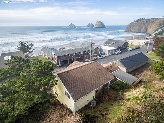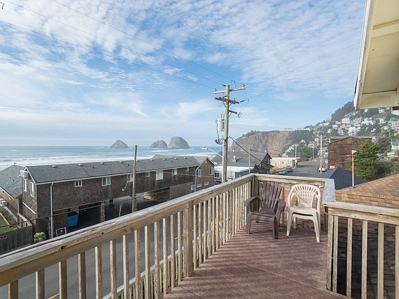 Talk about location! Attractively remodeled home located smack dab in the heart of the Oceanside Village, just one row removed from oceanfront. Literally steps to beach, coffee shop and fabulous Roseanna's Cafe. Sensational up-close views of surf, sand and the Three Arch Rocks from upstairs living room and bedrooms. Light and bright throughout with exposed wood ceilings and two ocean view decks.