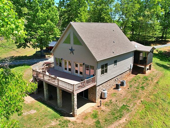 Check out this stunning custom A style home sitting on 3 private acres located just minutes from the town of Appomattox with FIREFLY fiber optic internet! This 2900 sq' home has incredible views that look out over the neighboring farm and features a massive vaulted ceiling with an OPEN layout. In 2018 there was an addition added that included a second primary bedroom with a stunning tiled bathroom and a private covered and screened porch to enjoy the views. The kitchen features newer granite counters (2018), beautiful stainless appliances, a full tile backsplash and a very nice eat at island. The second primary suite has another custom tiled shower and a large walk in closet. The basement is finished with a nice living/game room area, a full bathroom and incredible bar area. The exterior has breathtaking landscaping, a 30x14 front deck overlooking the views, a beautiful shaded patio under the deck, a storage shed that conveys along with a metal carport. Call today to take a look!