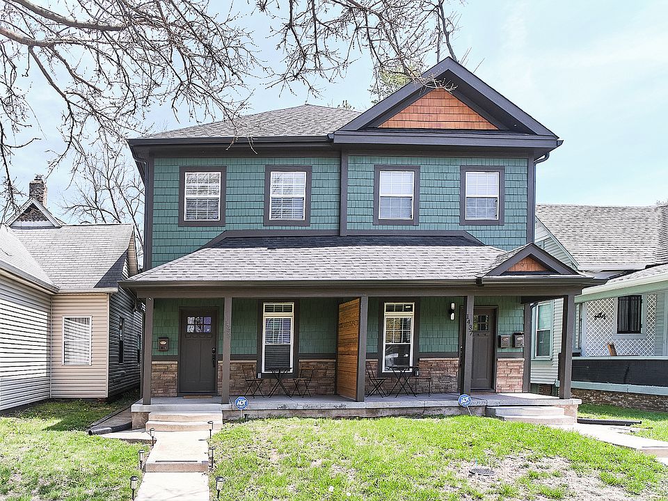 Beautiful FULLY FURNISHED remodeled 2BD/2.5BA duplex with a front porch in the revitalized Bates Hendricks neighborhood. First floor has a living room, kitchen and powder room. Upstairs has Primary bedroom with ensuite, 2nd bedroom, laundry closet and full bath. LVP flooring throughout and fully fenced in yard. If you enjoy being outside, the fully fenced in yard has a covered deck in the back yard off of the kitchen and an upstairs deck off of the primary suite. Close to the interstate, Eli Lilly and downtown Indianapolis. Available for immediate move in. Washer/Dryer $50mo.