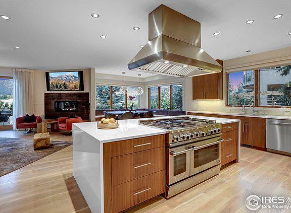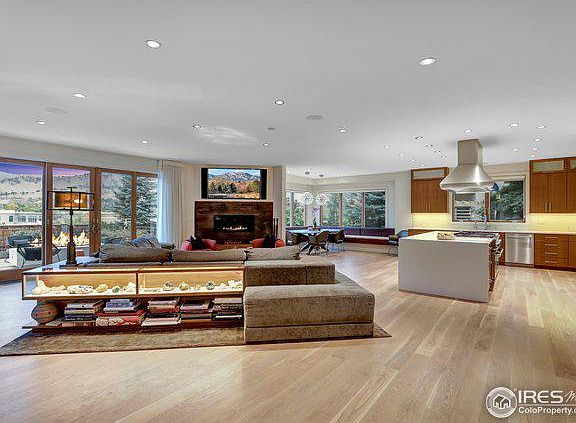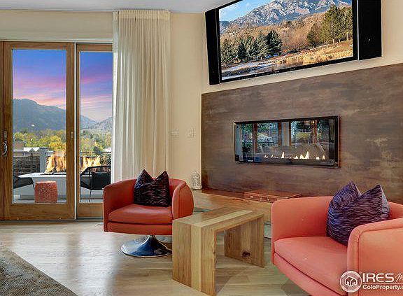 Discover this breath-taking home oriented to capture sweeping unobstructed views. Inside are soaring ceilings, wide-plank white oak floors, & walls of windows with an open kitchen anchored by a stunning quartz island including a vented six-burner gas range. The Living room features a spectacular gas fireplace with ample space for relaxing and entertaining. Enjoy lively dinner parties in the large dining room, intimate dinners in the custom dining nook with banquette seating or head outside to the deck that is equipped with ceiling mounted infrared heaters & two outdoor fire pits. Ascend the home's wide, floating staircase that features a waterfall and discover the 4 bedrooms with hardwood floors on the second floor. The tranquil master suite boasts incredible views, a custom walk-in closet & a luxurious en-suite bathroom with a free standing soaking tub, glass steam shower with bench & views of the foothills, and a floating double vanity. 3 minute walk to Boulder's Pearl Street Mall.