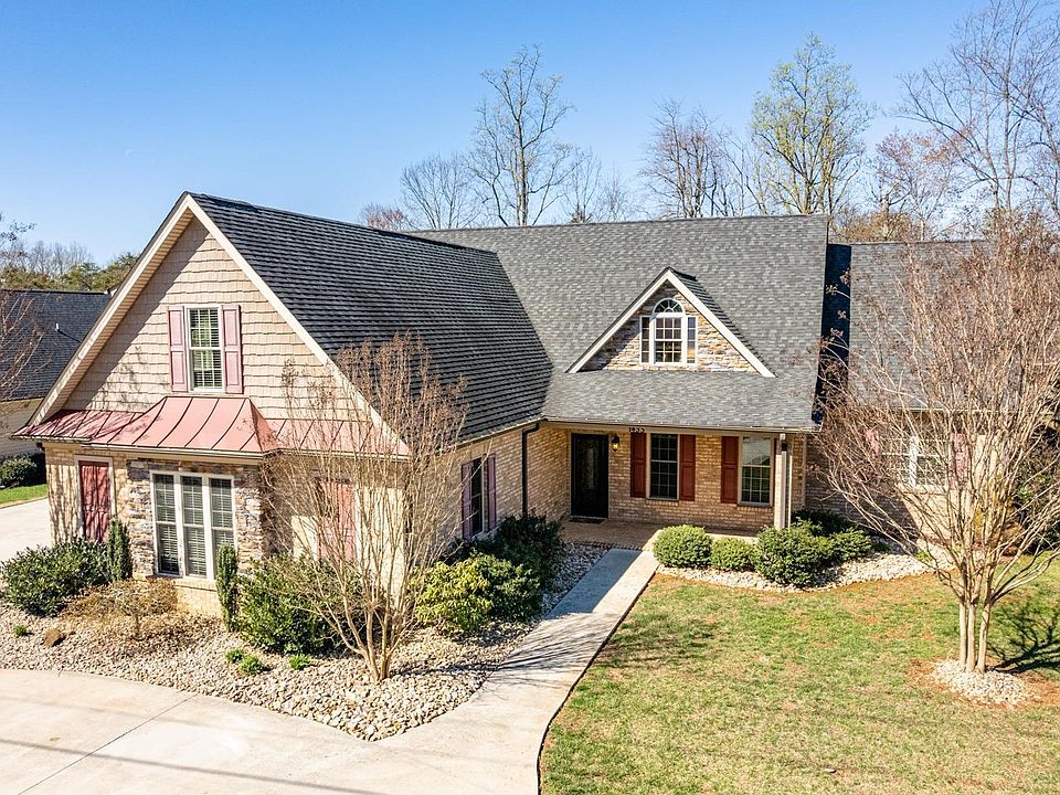 Guests will be greeted like royalty as they enter the circular driveway, stunning home, oversized garage. MUST SEE 3-D Tour and floor plan. Lovely home, sought-after floor plan boasting true main level living, NO STAIRS to enter from the beautiful covered brick front porch or garage, ease for wheel chair accecss. Amazing home features a lovely foyer, arched entry to the formal dining room with coffered ceiling. Soaring ceiling in the great room with gorgeous stacked stone fireplace ideal for entertaining, access to the relaxing screened porch overlooking lush back yard to chat the day away. Stunning kitchen with granite, seating bar, beautiful cabinetry with pull-outs, nice appliances, bay breakfast nook, open to the great room. Impressive en-suite master, such a retreat after a long day. Double vanity, unique L-shaped tile shower, tub, huge closet. Two other private bedrooms on main level, plus bedroom on second level with full bath. Main level laundry, abundance of closets. WOW!