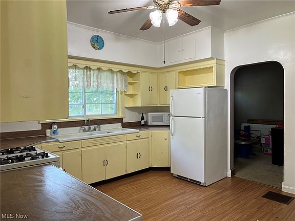 3 Bedroom 1.5 bath 2-story located a short distance to Bridge St, Walnut Beach and the Ashtabula River! Spacious living room and kitchen. 1st floor half bath, plus a dining room and heated enclosed front porch that adds bonus living space. All 3 bedrooms are on the second floor along with the enormous 15 x 9 full bath that features an abundance of built-in storage. Back porch (has new roof) offers additional storage opportunities. Full basement, updated wiring throughout and newer roof. Nice for the Price!