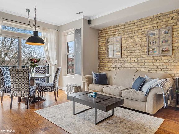 Welcome Home! Pristine penthouse unit located in the heart of the Southport Corridor. Top floor 2 bed 2 bath with roof rights features an open layout with stainless steel appliances, large kitchen island open to your living room and separate dining area. Master bedroom features marble and stone finished master bath with dual vanity and separate shower and soak tub. Hardwood floors throughout, washer dryer in unit and large storage locker specific to your unit. Building has new common fenced in yard with stone patio. A++ location, walk to all the southport shops & restaurants, Wrigley Field and both Brown and Red line trains. Easy street parking and rental options in the area $150/month.