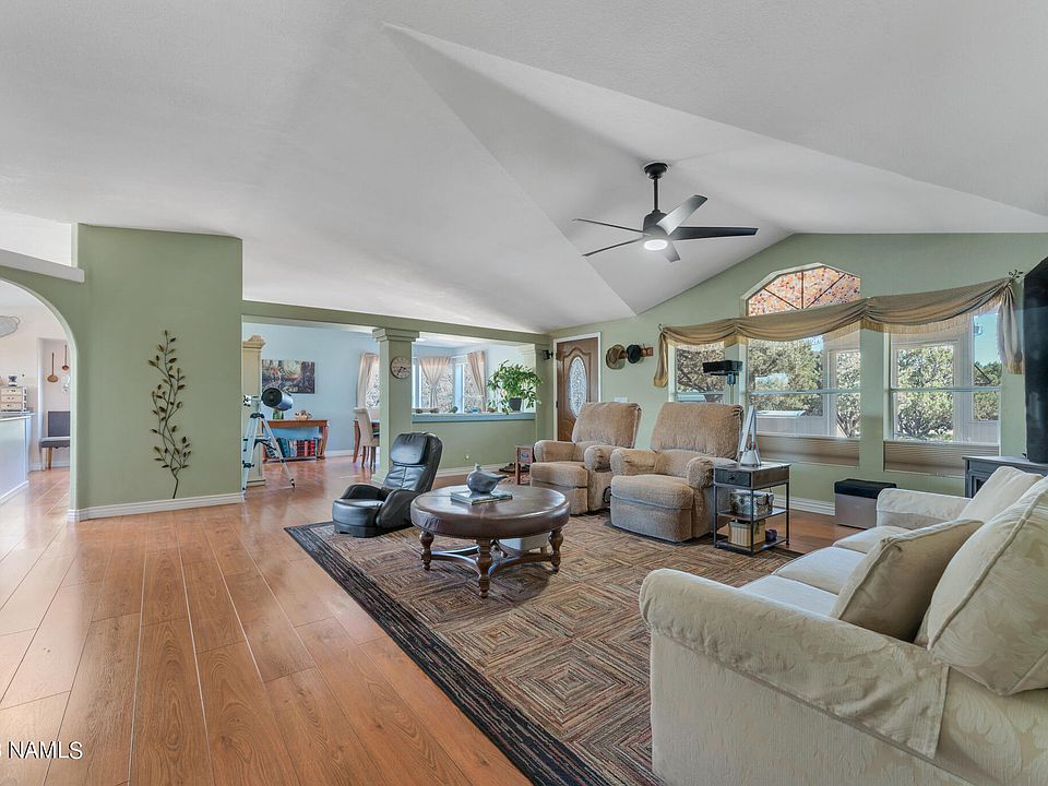ACCEPTING BACK-UP BUYERS. Discover this beautiful well-maintained home on this clean heavily treed property. On 1-acre, this 1,908 square foot home has most everything you could want! County-maintained roads, fully fenced property & newly installed 35-year roof! Large site-built two-car garage with separate theater room & workshop. Large carport. Over 1,500 sq ft of patio concrete. Huge enclosed front deck with Hot Tub & knotty pine ceiling. Covered back deck. Huge 400 sq ft living room. Beautiful kitchen with lots of counter space, 3 pantries & panoramic windows with view of Grand Canyon rims! Cellular shades. Central air/heating & wood stove. Beautiful wood laminate flooring. Matching front load washer/dryer and dual oven stove.