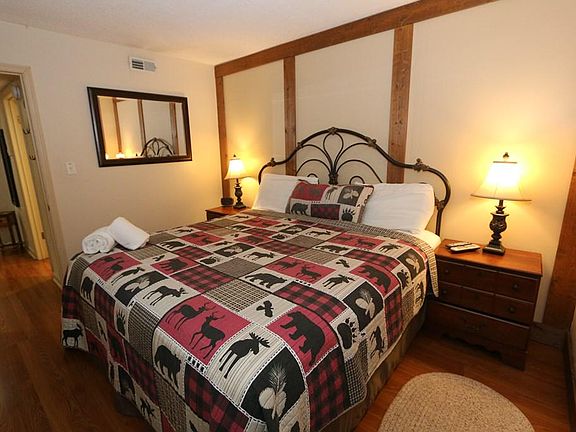Relax in your 1 bedroom condo overlooking a stream in The Great Smoky Mountains in Gatlinburg. As you enter, the bedroom and bath are to your right. Proceeding down the hall is the stocked kitchen overlooking the living room and whirlpool tub. In the corner is the wood-burning fireplace. As you open the doors onto the deck overlooking the stream. You can enjoy the sounds of the water and the forest that sit outside your door. Downtown Gatlinburg is just a 5-minute drive down Ski Mountain Road. If you decide to turn right you can be at Ober Gatlinburg in less time. Ober offers seasonal snow skiing, an indoor ice rink, and many shops. You can get easy access to The Great Smoky Mountain National Park via the bypass.