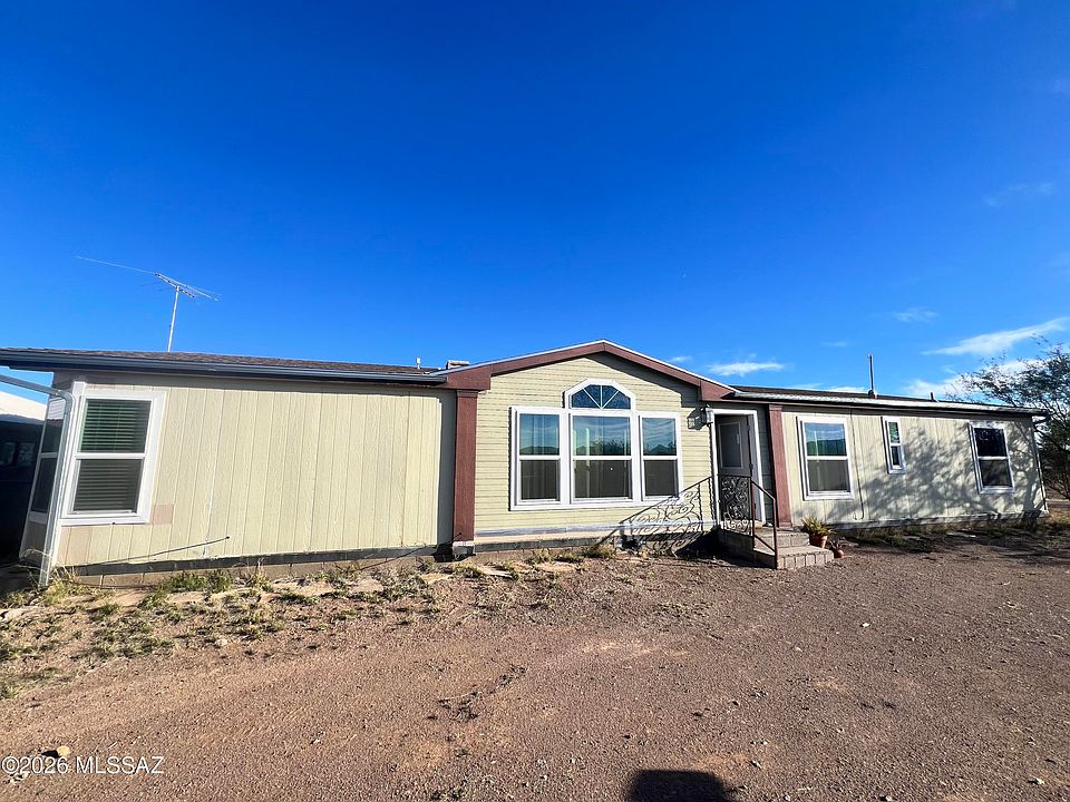 Amazing views on 9.69 ac. of fully fenced Serenity for your horses or livestock. This 1960 sq. foot double wide has been fully remodeled inside with all new Hickory cabinets in Kitchen , 2 new baths, Laminate Hickory Flooring, Ceiling Fans, & Freshly Painted. A double Stucco detached garage appx. 837 sq. foot with water, sewer, electricity, & bathroom ready to be remodeled for your Casita, Man or Lady cave or Art Studio. Newer HVAC & part of the roof is new as well. The View will speak for itself & 1/2 mile from 1,000's of acres of state land.