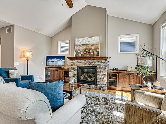 Sold before print. Agent related to seller. Built in 2015 by Terry Wensmann. The primary bedroom and office highlight board and batten accent walls and the lower level fireplace is surrounded by reclaimed wood to offer an extra cozy feel to the lower level. The home has views of Jeffers Pond and easy access to the walking path. It walks out to a covered patio and has the option to add an additional bedroom.
