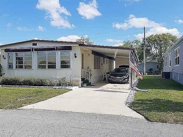 This roomy, well-kept home is in the Fairways Country Club, a gated, golfing community with loads of amenities and a convenient East Orlando location. The open floor plan features a large, sunny living room with sliders to a finished Florida room, adjacent dining area with built-in buffet, cabinets, and shelves, fully-applianced kitchen, master suite with private bath, guest bedroom, guest bath, storage shed with laundry, and covered carport. Other features include roll-down hurricane shutters, metal roof, and a pond view across the street. Value-priced and ready for a new owner.