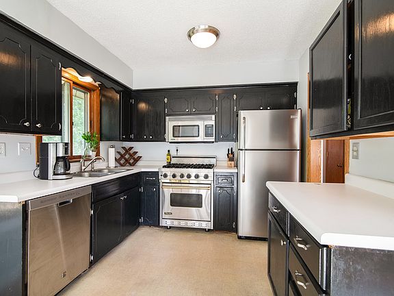 Private access to Prior Lake is just one block from this updated 4 bedroom, 2-bathroom house! Enjoy views of Prior Lake from the kitchen and balcony, a large fence-in yard, stainless steel appliances with a Viking stove and microwave, and a large 2-car garage!