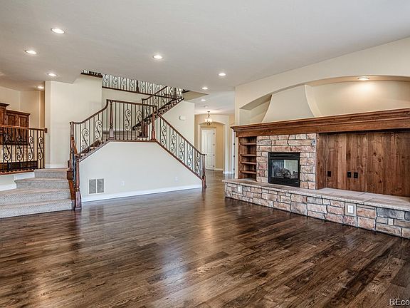Showings are allowed per the 'Safer At Home' public health order. Please contact your agent to schedule a showing. Mountain views in Huntington Trails! Newly refinished hardwood floors throughout the first floor, with a layout that includes vaulted ceilings, formal living and family rooms separated by a double sided gas fireplace, kitchen with new high-end stainless steel appliances, granite counter tops, walk in pantry, breakfast island, and kitchen nook leading to the back patio. A butler's pantry joins the formal dining room to the kitchen. A guest bedroom with full bath, two home offices, a half bath, a mudroom and storage closet off the four car garage complete this level. Upstairs is the master suite, with tiled five piece bath, walk in closet, roomy loft space, two bedrooms with a Jack-n-Jill bath, a guest bedroom with full bath, and the laundry room. The lower level is finished with a wet bar/kitchenette, half bath, a family/game room, flex/media room, a bedroom with full bath, a flex/gym space, and two storage rooms.