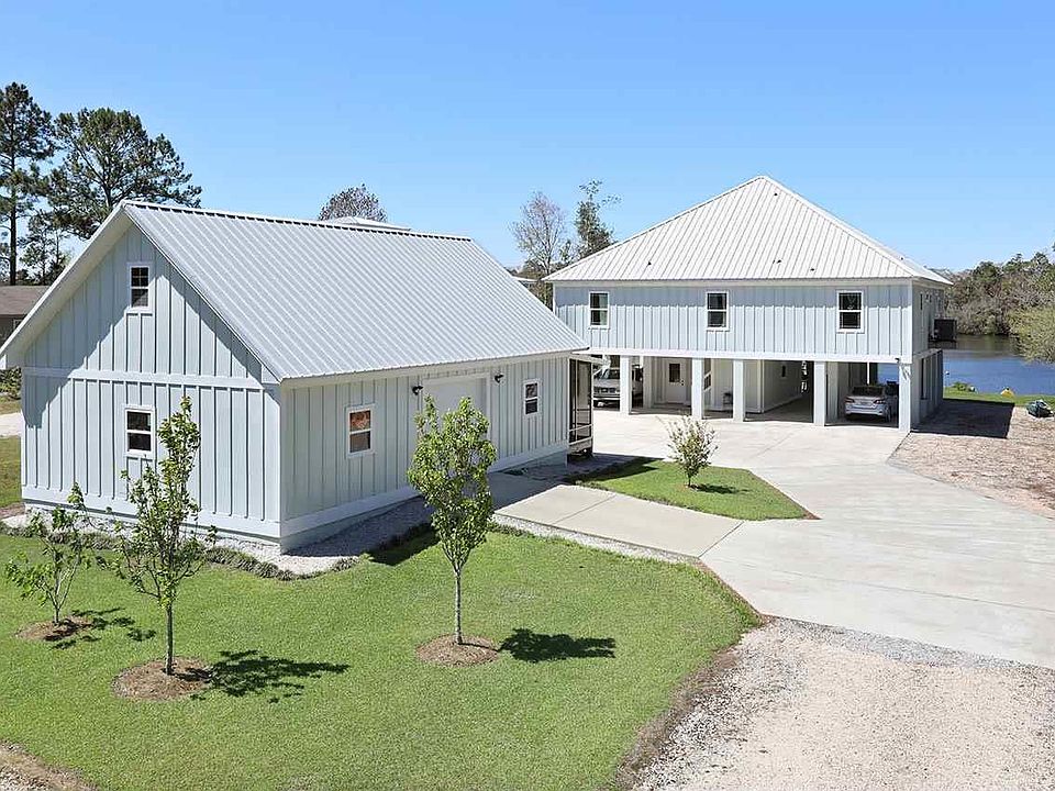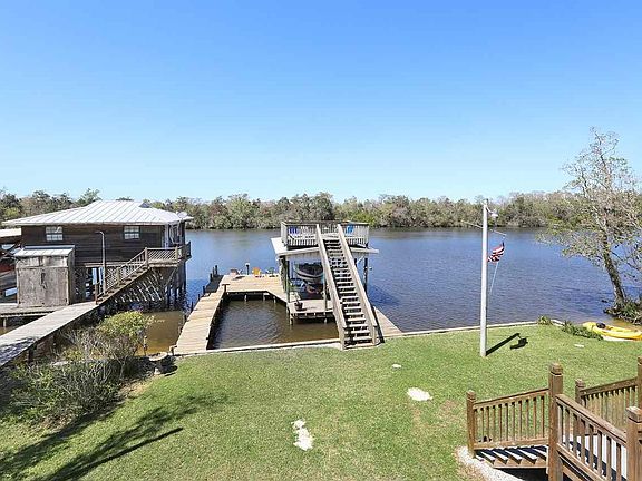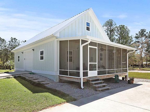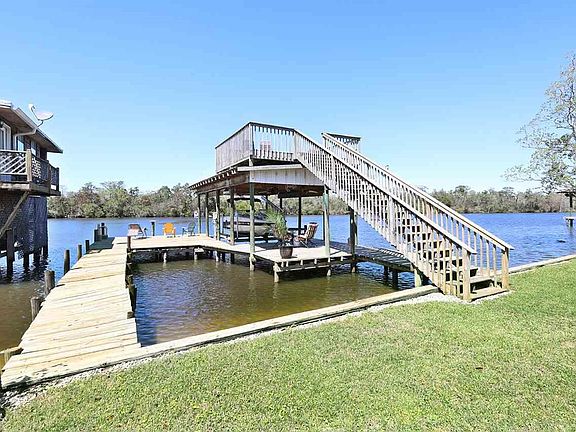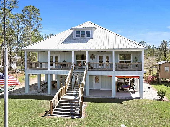 Gorgeous custom built 3/2.5 with detached garage/guest apartment on Fish River. 1800 sq. ft. on the main level, with a 600 sq. ft. bonus room on the upper level that has been framed out as an additional master, fully plumbed & all electrical done. Kitchen features stainless smudge-proof appliances, pot filler, true vent hood, undercounter microwave, granite countertops, and a glass tile backsplash. A spacious laundry room with utility sink, an oversized pantry, sound-proofed master, and an office nook are just a few of the extras this home contains. Enjoy stunning views of the river from the dining area or light-filled great room. Deck has been wired for surround.Ground level offers covered parking and a large storage room. One car garage with additional, floored storage upstairs, and a two-story, 1/1 guest apartment that includes full kitchen with glass tile backsplash, separate utility meter, tankless water heater, (2) mini-split ACs, and screened porch. Beautifully landscaped with producing fruit trees. 80 ft. of waterfront with kayak launch, boat lift, and upper & lower sun deck. Deep water, not in a no-wake zone, so watch your skiers from the balcony. On Magnolia River Mail Route, one of the only water-delivery postal routes in the country. Heavy gauge metal roof, spray foam insulation throughout, dual speed AC, TREX decking on patio and stairs, fully cased vinyl windows, all LED lighting, and crown throughout. Must be seen to be appreciated!