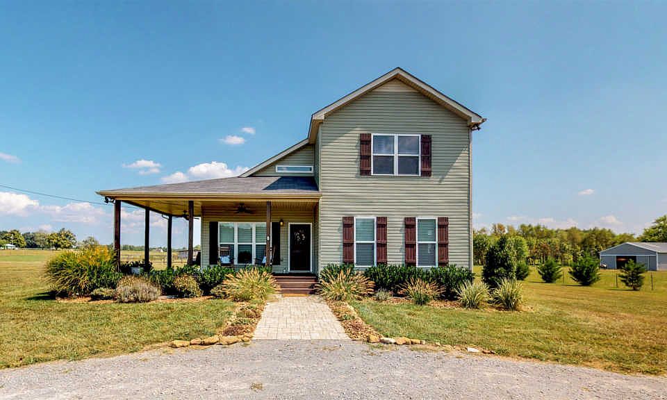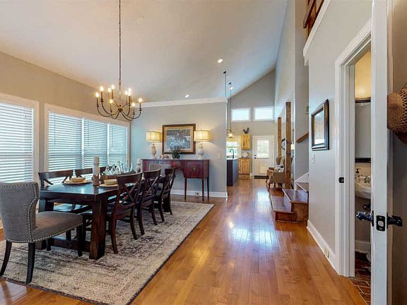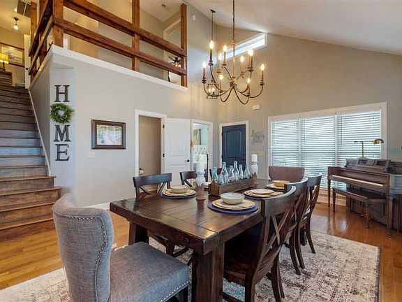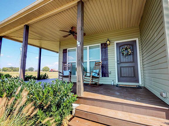 Gorgeous home in the country on 5 acres. Open floor plan with vaulted ceiling down and spacious bedrooms. Freshly painted & new light fixtures. Large kitchen with stainless appliances & new dishwasher. Master suite downstairs with walk-in closet. Warm hardwoods and tile floors flow throughout- no carpet! Rocking chair porches overlook beautiful view & outdoor living area with new stone patio & fire pit. Fenced for horses w/ 2 stall barn.