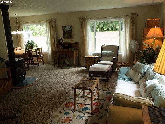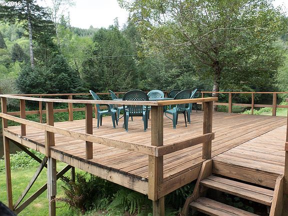 Spectacular river VIEWS from the deck of charming 3/2 mfg home w/cabin on 1.36ac.East Fork Millicoma Rvr. Large deck overlooks 200'' of RIVER FRONTAGE & beautifully LANDSCAPED yard. Gorgeous view of garden and orchard from shaded porch w/ apple, plum, and pear trees. OUTBUILDINGS-2 garages,a shop,& excellent well water thanks to a brand new pump house,500 gal.holding tank w/dbl filtration system.