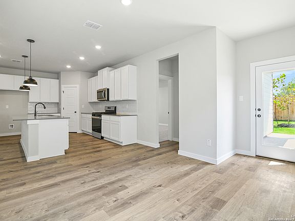 MLS# 1880108 - Built by HistoryMaker Homes - Ready Now! ~ Stunning New Construction in Morgan Meadows - Discover an exceptional opportunity in the sought-after Morgan Meadows community with this beautifully designed single-family home, offering 3,062 square feet of thoughtfully planned living space. Featuring 4 spacious bedrooms and 4 bathrooms (including 3 full baths and 1 half bath), this residence effortlessly blends comfort, style, and functionality. From the moment you step inside, you're welcomed by soaring ceilings in the living room, creating a bright and open ambiance-ideal for both everyday living and entertaining. Large double-pane energy-efficient windows flood the interior with natural light while reducing energy costs. The modern open-concept design includes a blend of luxury vinyl tile and plush carpeting, offering both sophistication and durability. Stay comfortable year-round with zoned central heating and cooling systems, perfectly suited to the expansive layout. Outdoors, enjoy a beautifully finished patio slab-a perfect setting for evening relaxation or weekend barbecues. A privacy fence ensures a peaceful retreat, while the built-in sprinkler system keeps the yard green and inviting all year long. Built on a solid slab foundation with a durable composition roof, this home promises long-lasting quality with minimal maintenance. Families will appreciate its location in the highly regarded Northside Independent School District, with Katie Reed Elementary, Straus Middle School, and Harlan High School conveniently nearby. This is your chance to personalize a brand-new home in a growing, vibrant community. Don't miss out-create your dream lifestyle in Morgan Meadows today!