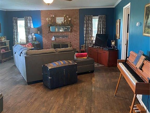Discover a peaceful retreat on this 2.4-acre property just minutes from the city limits. This charming ranch-style home features original hardwood floors throughout and offers a versatile layout that includes a spacious living area with a cozy fireplace, a separate studio or bonus room, and a workshop for your DIY projects. Step outside to enjoy the serene pond, fruit and nut trees, colorful perennial flowers, and a screened-in porch perfect for relaxing on warm summer days. With recent updates like a metal roof, new windows, and a high-efficiency heat pump, this home provides a comfortable and efficient living space. The property also offers ample space for gardening and outdoor activities. Don't miss this opportunity to make this peaceful retreat your own.