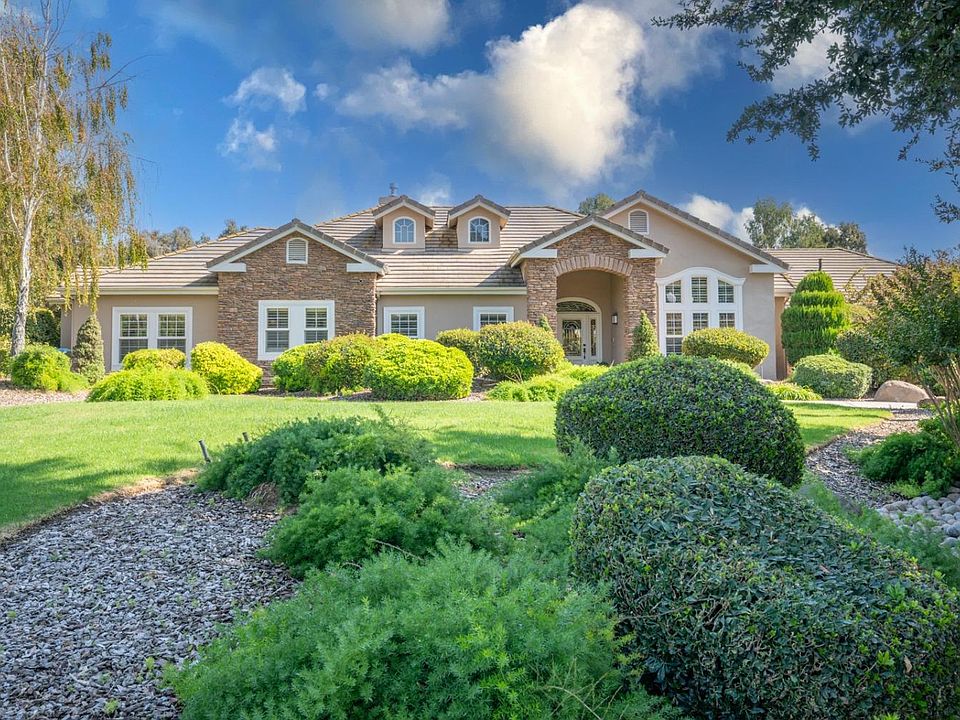 Worthy of a being featured in Architectural Digest, this beautiful property, which will surely impress even the most discerning buyer, consists of two houses. Located in the gated Silk Oak Estates Community on two park-like acres, it features a total of approximately 4,345 square feet the main house being 3,845 square feet and a comfortable guest house of approximately 500 square feet. In the main house you'll find hardwood floors, a large open concept living area, a gourmet kitchen with a large island, wine storage closet, a subzero refrigerator and two Wolf ovens, granite counter tops, central vac system, four large bedrooms, three and a half baths, a formal dining room, plantation shutters all done with meticulous attention to detail. The owner's suite, with its sitting area and spa-style bathroom including a Jacuzzi tub is reminiscent of a four-star resort. Step out to the backyard and you'll find a sparkling pool, a full outdoor kitchen, koi pond with a fountain, a putting green, a vegetable garden with drip irrigation and a fenced 3/4 acre pasture that can accommodate livestock. For additional storage there are two Tuff Sheds. Homes rarely become available in Silk Oak Estates so if you're looking for a luxury property that stands apart from the rest, a home with flair and lots of unique features this one deserves a look!