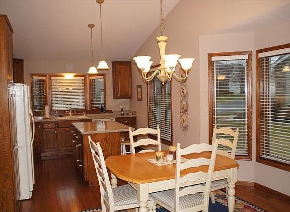 Wonderful condition Rambler style Twin Home loaded with quality features. Cambria counter tops, 42' cabinets, vaulted main floor, corner Jacuzzi, HWD & ceramic tile flooring, knock down ceilings, central vac., vaulted sun room and much more