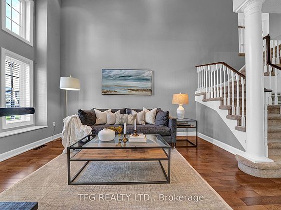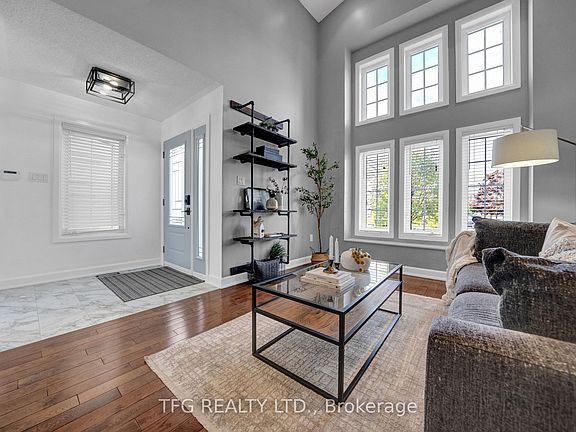 Welcome to this exceptional fully detached residence, offering nearly 2,000 sq. ft. of elegant living space above grade plus a professionally finished basement. With 4+1 spacious bedrooms and 3 beautifully appointed bathrooms, this home blends timeless sophistication with modern comfort. Step into the gourmet chefs kitchen, showcasing sleek quartz countertops, custom cabinetry, premium stainless steel appliances, and a sun-filled eat-in breakfast area. The layout flows effortlessly into the open-to-above family room, where soaring ceilings, expansive windows, and a cozy gas fireplace create the perfect setting for gatherings. Every detail has been carefully curated from the hardwood floors to the pot lights and freshly painted interiors. Bathrooms have been fully updated with spa-inspired finishes, ensuring a true retreat at home. The lower level adds even more space with a finished basement, with an additional bedroom, home office, gym, or media lounge. Perfectly situated in a prestigious, family-friendly community, this home is surrounded by top-ranked schools, lush parks, shopping, dining, and easy access to major amenities and 407.A rare opportunity to own a move-in ready home that truly checks every box. Don't miss it!