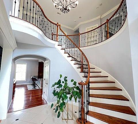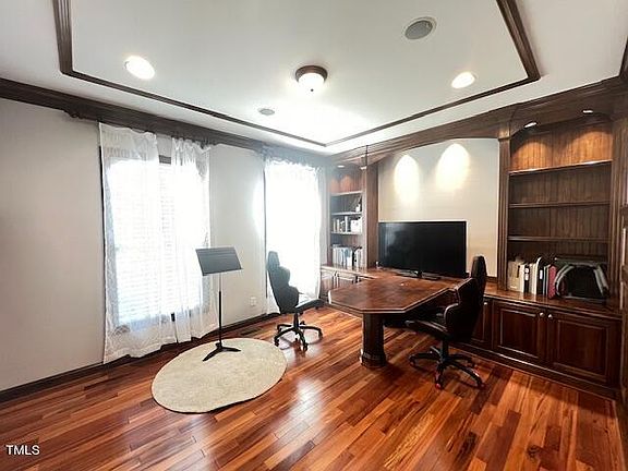 Formal model Home for Sale!!! This 4-side brick home features the best of the best! Beautiful spiral staircase w/wrought iron balusters adddrama to tiled foyer. Formal dining room w/butler pantry. 1st floor office w/built in desk & cabinetry. Gourmet kitchen with cook top island, wall oven, eat in kitchen, which opens to family room & sunroom. Exotic hardwoods throughout 1st floor. 2nd floor offers 4 bedrooms w/large bonus, study area with built in desks, book shelves and wet bar. Minutes to RTP/shopping
