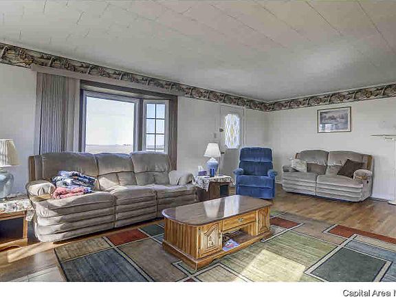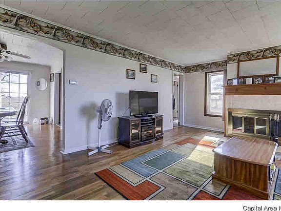 Country living at its best on a little over 3 acres just a short drive from Springfield, Taylorville, & Decatur! This well-maintained 3bd/1.5ba bungalow is ready for its new owner. This home boasts a spacious living rm w/beautiful wood flrs & updated kitch (appliances stay!). Dining rm perfect for hosting family gatherings. Sliding door leads out to deck & backyard. Huge attic space provides 3rd bed, rec room, or office. Full, unfinished bsmt for storage space or man cave. Items to brag about: updated bathrooms, new flooring in kitchen & full bath, newer roof & siding & 2.5 car detached garage