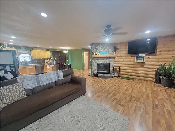 The spacious living area features a cozy stone fireplace and windows that invite abundant natural light, creating an atmosphere that is both inviting and tranquil. This is the perfect space to relax and unwind after a long day or to gather with loved ones for memorable evenings.