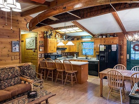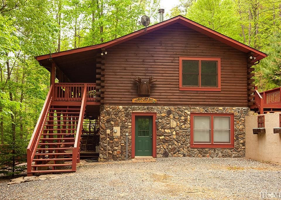 Looking for a Log Cabin in the woods on a creek? Welcome to Moose Creek Lodge! Come see this rustically furnished 3BR/2.5BA log cabin w/bonus room & family room. Perfect for family vacation or primary home. Plenty of privacy on 4.55 acres. Relax on the back porch, take a nap in the hammock & enjoy the sounds of the bold creek below. Walk in and feel right at home in the mountains while relaxing by the wood-burning stove with the hardwood floors, exposed beams & hanging canoe. Plenty of space for cooking/dining in the Kitchen/Great Room w/custom wood cabinets. Large Master En-suite on the main level w/plenty of storage/closet space & double vanity. Full bath w/walk-in shower & laundry. Venture downstairs to the gas logs & family room. 2 more guest rooms & bonus/flex room make plenty of room for family or guests. Step outside into the Hot Tub on the back lower deck. Then step down by the fire on the deck by the creek. Great fenced yard for gardening or pets. Storage building for 4-wheelers or lawn equipment. Nothing but pure relaxation in this humble abode! Convenient to Sylva, Waynesville, Harrah's/Cherokee.