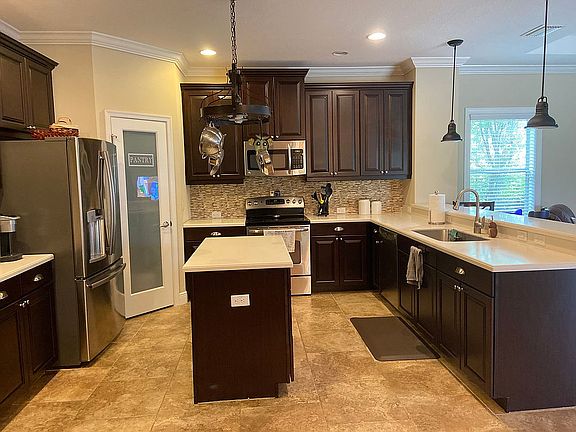 Welcome to your new home! This pristine 4 bedroom/3 bath/3 car garage home sits on a beautiful premium lot with gorgeous sunset preserve views. Lot is almost a half acre and fence-able! Split floor plan with all the formals. LOADED with upgrades including crown molding throughout, 5 1/4 baseboards, trimmed out windows throughout, 20x20 porcelain tile throughout main living areas and all 3 baths, 42” cabinets with moldings, under cabinet lighting, stainless steel appliances, built in breakfast nook bench, walk-in pantry, tray ceiling, built in surround sound in family room with Klipsch speakers, built in shelving with lighting in living/dining area, HUGE screened paver patio (already pre wired for a pool) with beautiful stained wood ceilings, cable hook up, tv mount, and surround sound, paver entry, roof vents for cooling, in-wall pest control tube system, paver firepit and playground! Master boasts beautiful wood laminate flooring, his and her closets plus separate coat closet and linen closet, en-suite bath features a large garden tub with cabinet detail and a large walk-in shower. Two secondary bedrooms on the other side of the home share a bathroom with a linen closet. The third bedroom to the back of the home has a private pool bath and pocket slider for privacy, perfect for guests! Garage has cabinets for storage, dedicated outlet, sink, attic access and attic storage. River’s Reach is a beautiful gated community with great amenities including a resort-style swimming pool and spa, grilling area, fitness center, playground, volleyball court, nature trails and kayak launch with access to the Manatee River. Close to shopping, dining, I-75, and of course award winning beaches!
