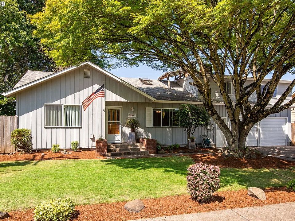 Conveniently located 3 bedroom, 2 bath home with easy care laminate flooring downstairs. Spacious living room w/ cozy pellet stove. Kitchen has stainless steel appliances & updated flooring. Home has 2 bedrooms downstairs, master is upstairs w/ walk in closet. Full bathroom upstairs. Bonus area upstairs would make a great office/play room. Spacious backyard w/ fruit trees, firepit, gazebo & beautiful covered deck for outside living!
