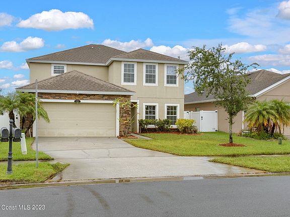 Room for ALL in this 5 bedroom home in West Melbourne! Enter the home with grand style - Living Room and Formal Dining with fresh natural light. Next, step into the HUGE kitchen featuring walk-in pantry, plenty of counter space, granite tops, and stainless steel appliances. OPENS up to breakfast nook and family room with doors leading to 8 X 10 covered/truss porch and back yard. BONUS in this home: 1 bedroom & full bath DOWNSTAIRS for guest or? Upstairs features a very spacious master bedroom and en-suite bathroom with double sink, granite top vanity, separate tub and shower and large walk-in closet. Convenient location near every-day shopping and restaurants PLUS quick drive to ''unique'' experience dining/shopping in downtown Melbourne along Indian River.