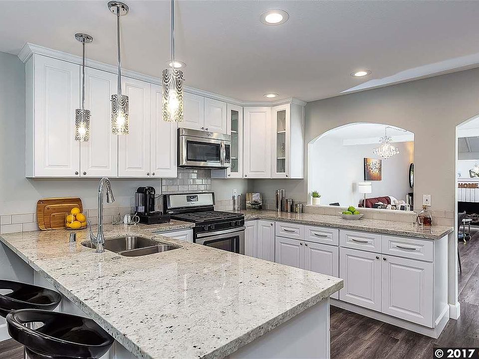 - KITCHEN FEATURES: Dishwasher, Garbage Disposal, Microwave, Gas Range/Cooktop, Pantry, Range/Oven Built-in, Refrigerator, Ice Maker Hookup, Updated Kitchen, Breakfast Bar, Counter - Stone, Self-Cleaning Oven