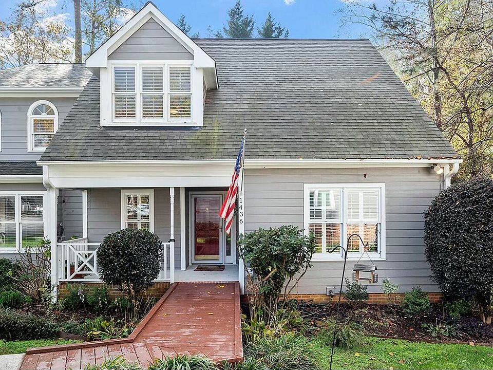 This accessible townhome has it all. An open living and dining area with a separate, enclosed, well appointed kitchen featuring granite counters, luxurious tile, and a vaulted breakfast nook. Enjoy coffee on your covered front porch or private rear deck while listening to the birds sing. Downstairs primary leads to an accessible bathroom with zero entry shower and side mount faucet on the sink. Bedroom 2 is upstairs and bedroom 3 features a dormer daybed and hidden sitting room perfect for legos, gaming, or crafting. This is one of the larger units in this close knit neighborhood and due to its location in the development is surrounded on one side by a lush lawn bordered with Tulip Poplars. Call today to book a private showing.