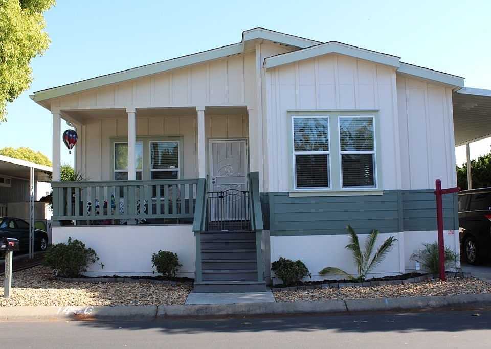 Newer Large 3 bedroom 2 bath manufactured home.. Open plan, Kitchen with breakfast nook, solid surface counters and lots of cabinets. Dine area with laminate floors, Spacious Living room with plenty of windows. Inside laundry room with storage and washer/dryer hookups. Master suite w/ walk in closet, glamour bath with soaking tub, separate shower, solid surface counters, & dual sinks. Good size spare bedrooms. Storage shed and central A/C, Close to the clubhouse and lots more.