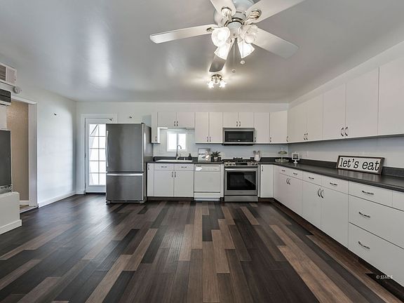 Adorable 3 bedroom, 2 bathroom with paid solar on double lot. New floors, paint and updated bathrooms. Cozy living room with window overlooking front yard. Office area with built in cabinetry. Primary suite with adjoining bathroom and laundry room. Guest bathroom has been remodeled with tile shower and new vanity. HUGE kitchen with newer cabinets and floors. PAID Solar. Adjacent lot included.