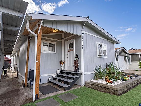 This recently remodeled manufactured home in a park is a must see! Remodeled inside and out. Flooring, paint, trim, bathroom, kitchen and more have all been thoughtfully selected. Main bedroom has a large walk-in closet and walk-in custom shower. Professionally installed turf grass and redesigned outdoor area help make this home a place to really enjoy. Plenty of off-street parking. Buyers must be approved with park. New owners monthly lot lease is $1,095.
